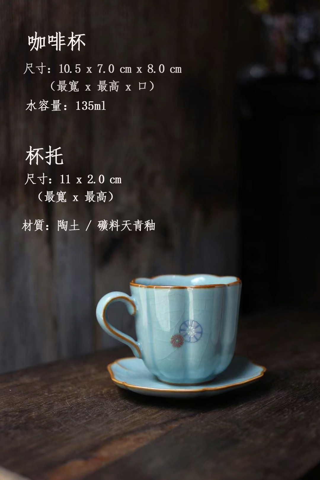 青瓷咖啡杯組-皮球花