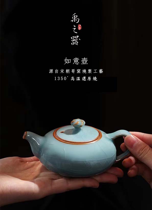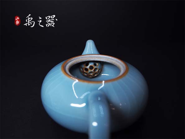 哥窯‧青瓷 素以瓷質細膩,青翠滋潤 青瓷的釉料都是採用礦料加工,經過1300度高溫燒製,釉面光滑穩定不奪茶味 (商品編號:HX0868) 《細節呈現》 彎流壺嘴 出水流暢 多孔過濾球 過濾茶渣 耳式湖把 拿捏舒適 完整底款 品質保證
